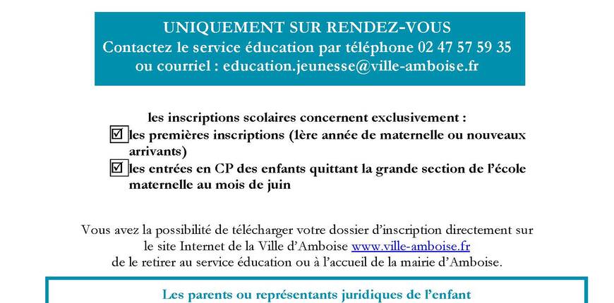 - Par voie postale : Mairie d'Amboise, service éducation - 60 rue de la Concorde 37400 Amboise