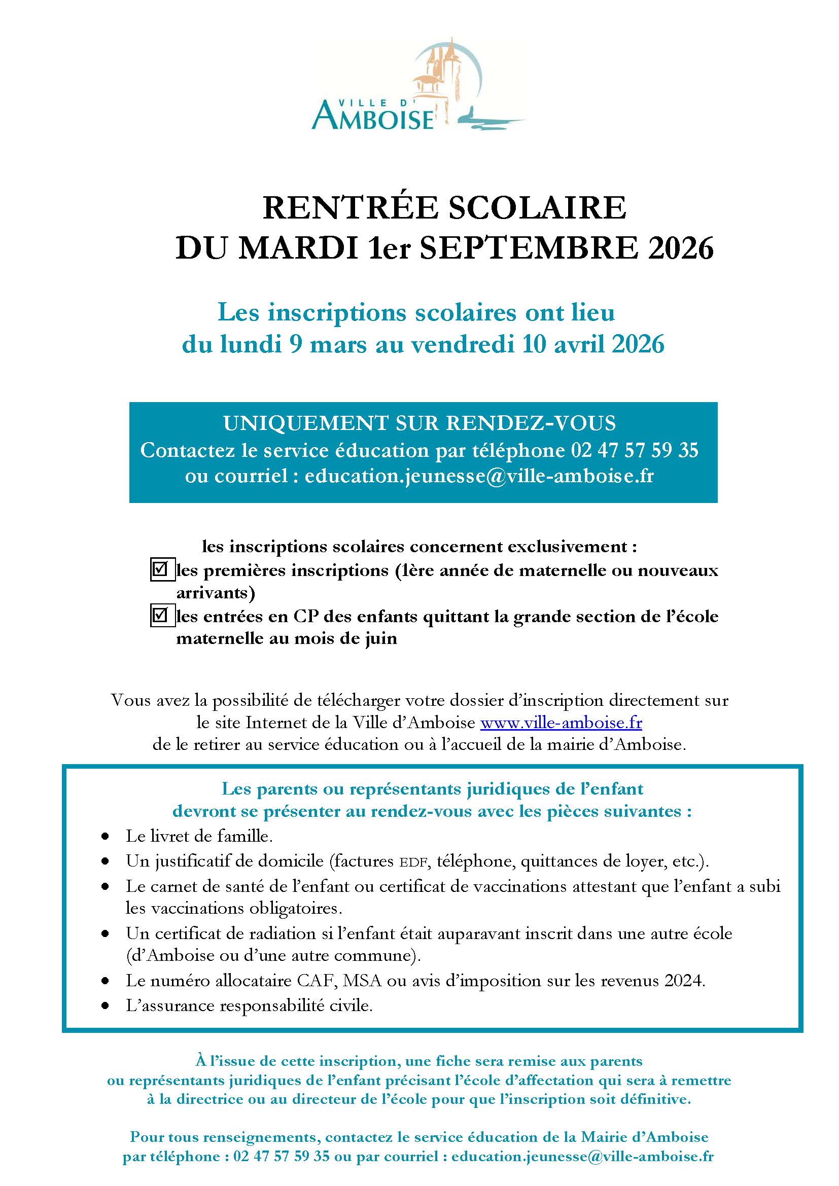 Tél. : 02 47 57 59 35 ou par courriel : education.jeunesse@ville-amboise.fr