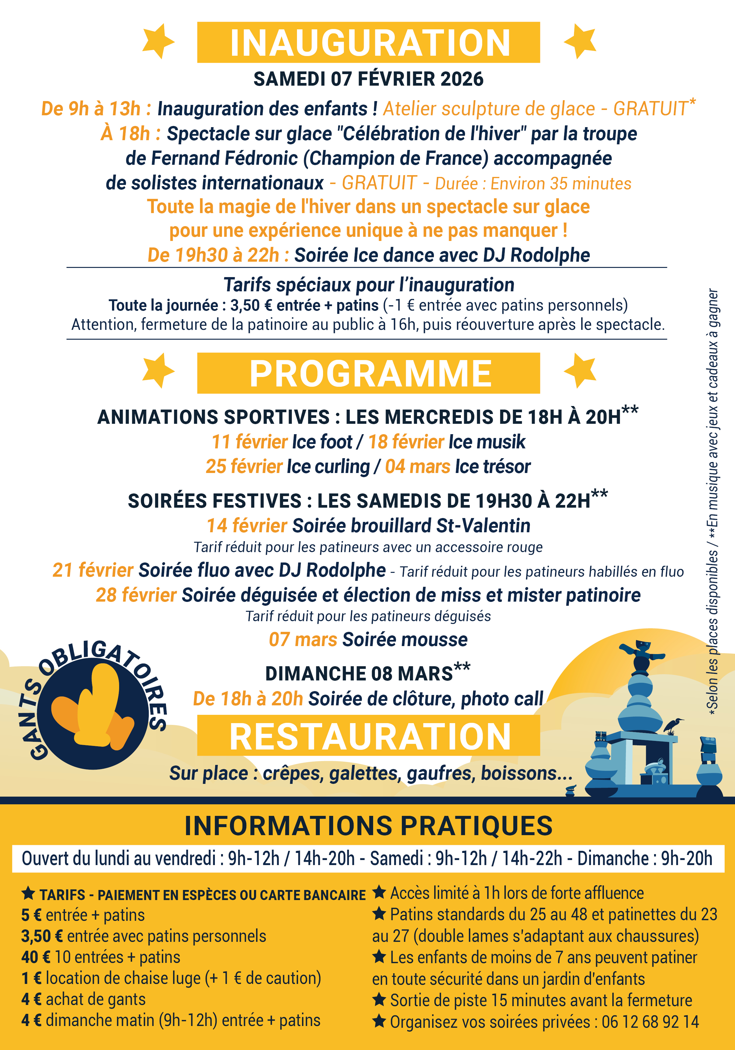 - TARIFS SPÉCIAUX pour l'inauguration : 3,50 € entrée + patins (-1 € entrée avec patins personnels).