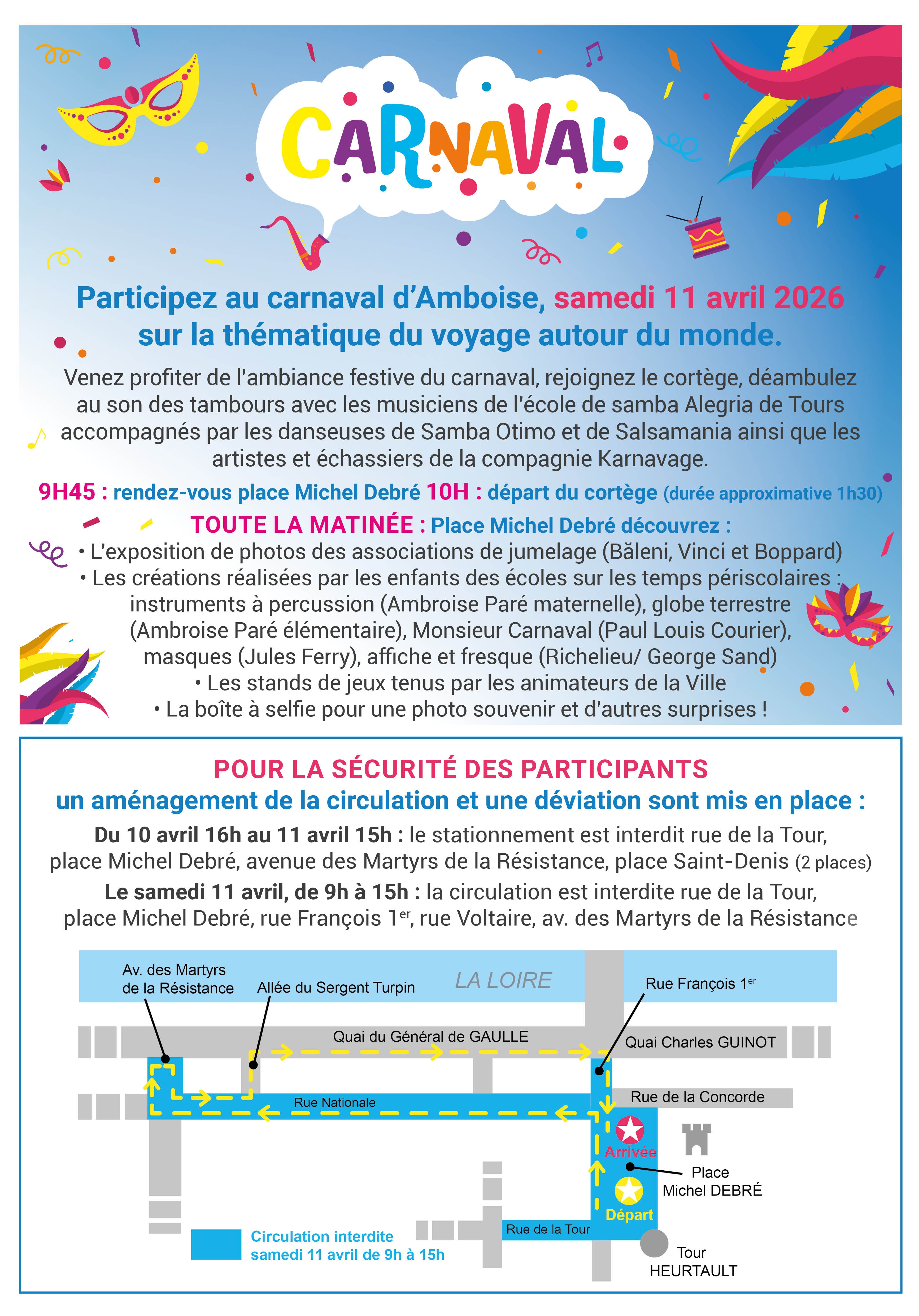 La Ville d'Amboise organise son carnaval le samedi 11 avril 2026