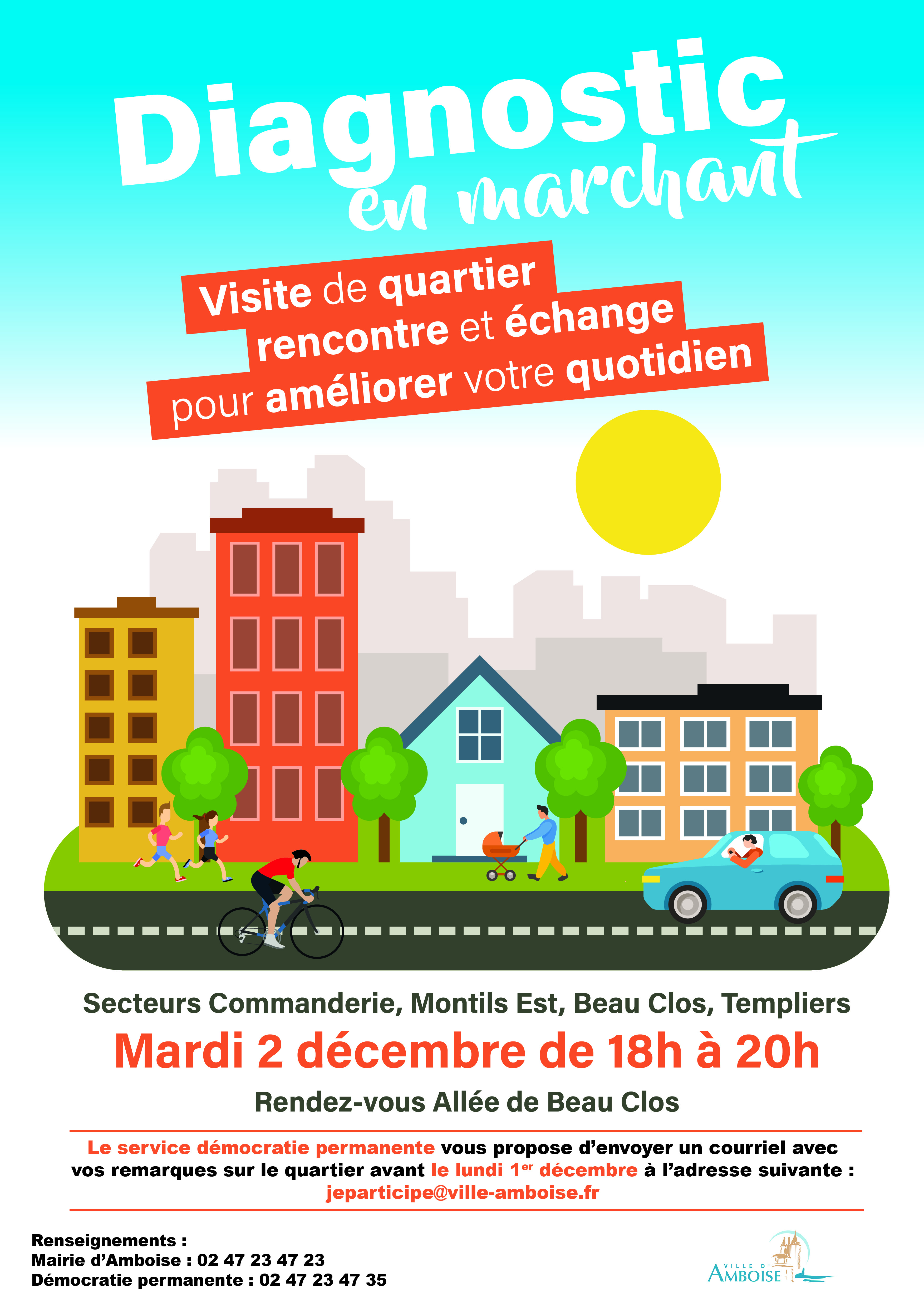 - Mardi 2 décembre à 18h : Secteurs Commanderie, Montils Est, Beau Clos, Templiers - Rendez-vous Allée de Beau Clos.