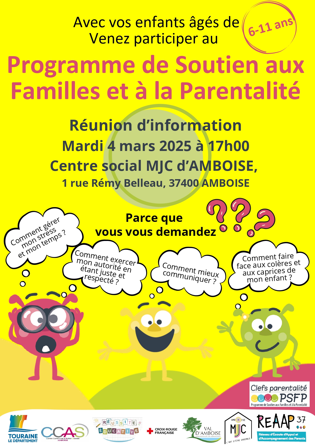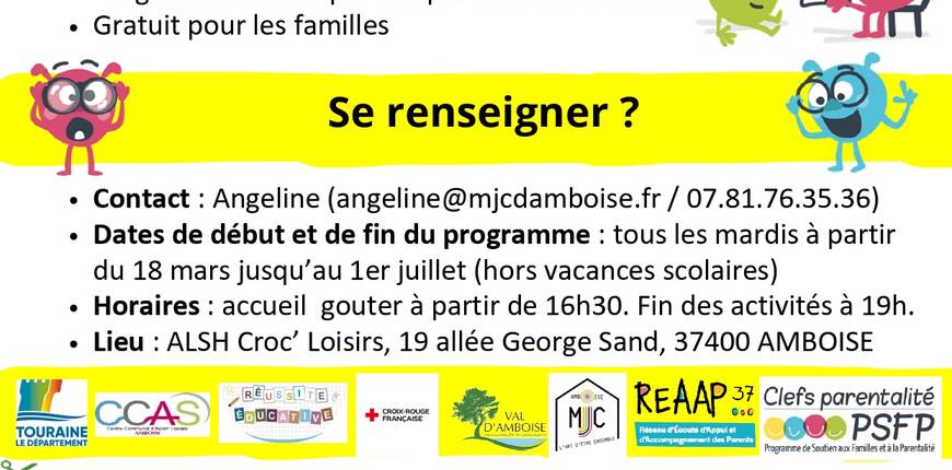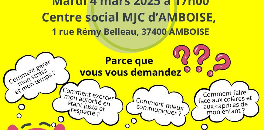 Rendez-vous mardi 4 mars à 17h au Centre Social de la MJC dans le cadre du Programme de Soutien aux Familles et à la Parentalité.