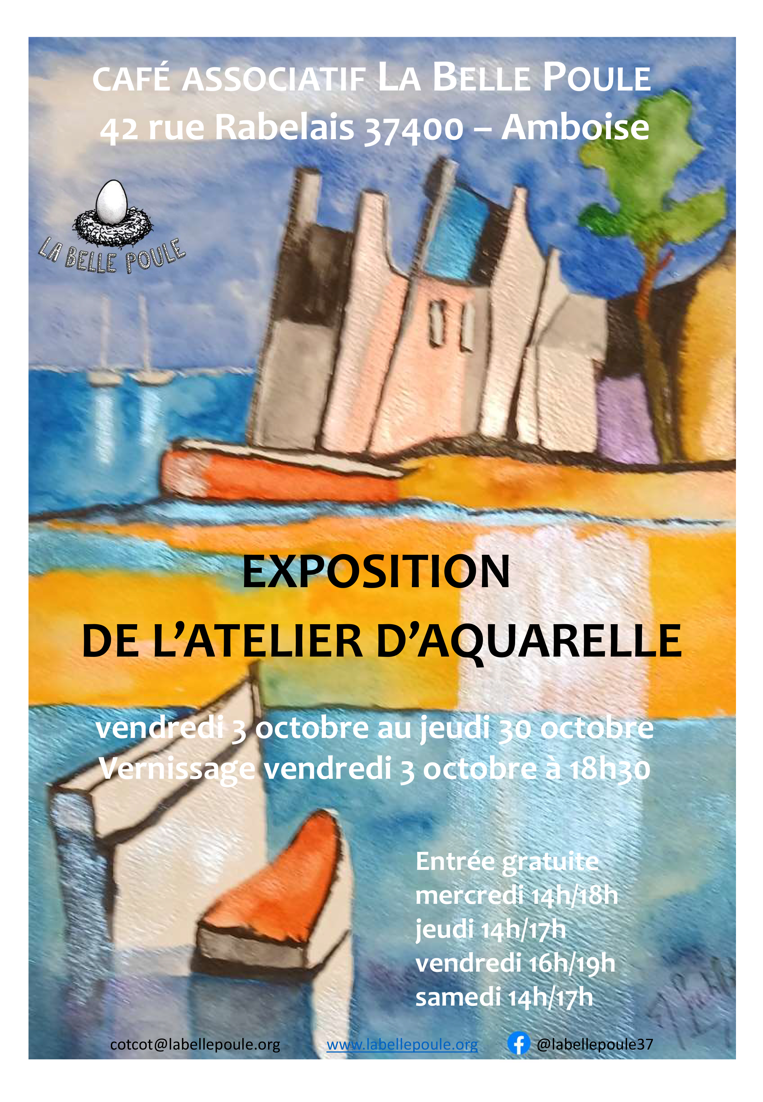 Le café associatif La Belle Poule propose une exposition de l'atelier d'aquarelle du 3 au 30 octobre 2025.
