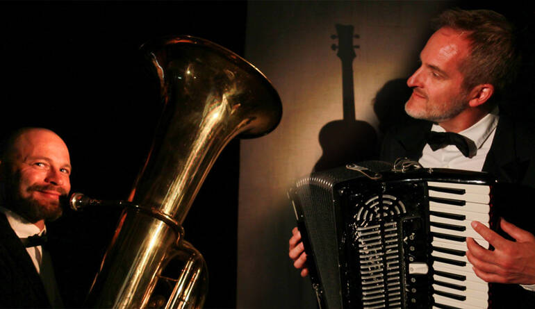 Mené tambour battant par trois artistes hauts en couleur parés de queues de pie et de multiples instruments — piano, saxophone, guitare, trombone, accordéon, tuba — ce spectacle propose un voyage ludique et pédagogique.