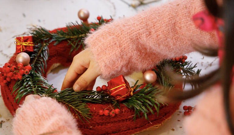 - Ateliers couronnes de Noël du 21 décembre au 3 janvier (sauf les 24 & 25 décembre et le 1er janvier) de 11h à 13h.