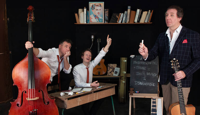 Passionnés de jazz manouche, Jean, Paul et Brice ont à cœur de partager leur connaissance du genre et mieux faire connaître le destin extraordinaire de celui qui lui a donné naissance.